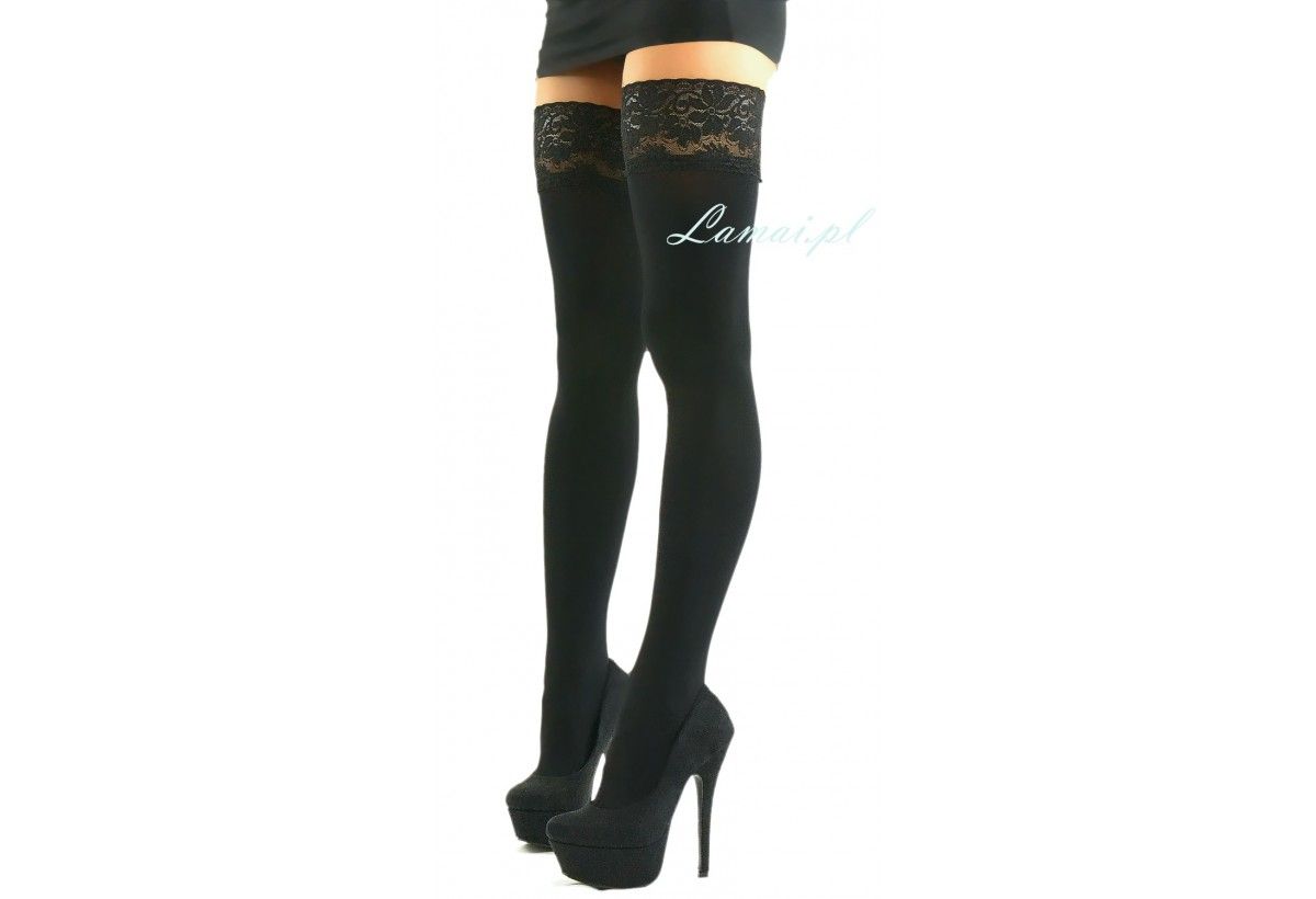 Miękkie, ciepłe, kryjące, gładkie pończoszki samonośne Chanel - Chance 100. Zakończone piękną koronką na silikonie 8cm. Grubość 100 den.