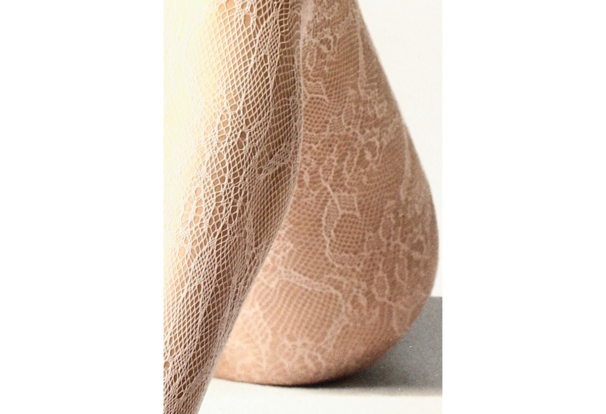 Charly P04 MARILYN cienkie rajstopy ażurowe w kolorze beżowym. Piękny motyw kwiatowy. Rajstopy we wzorki z siateczki.