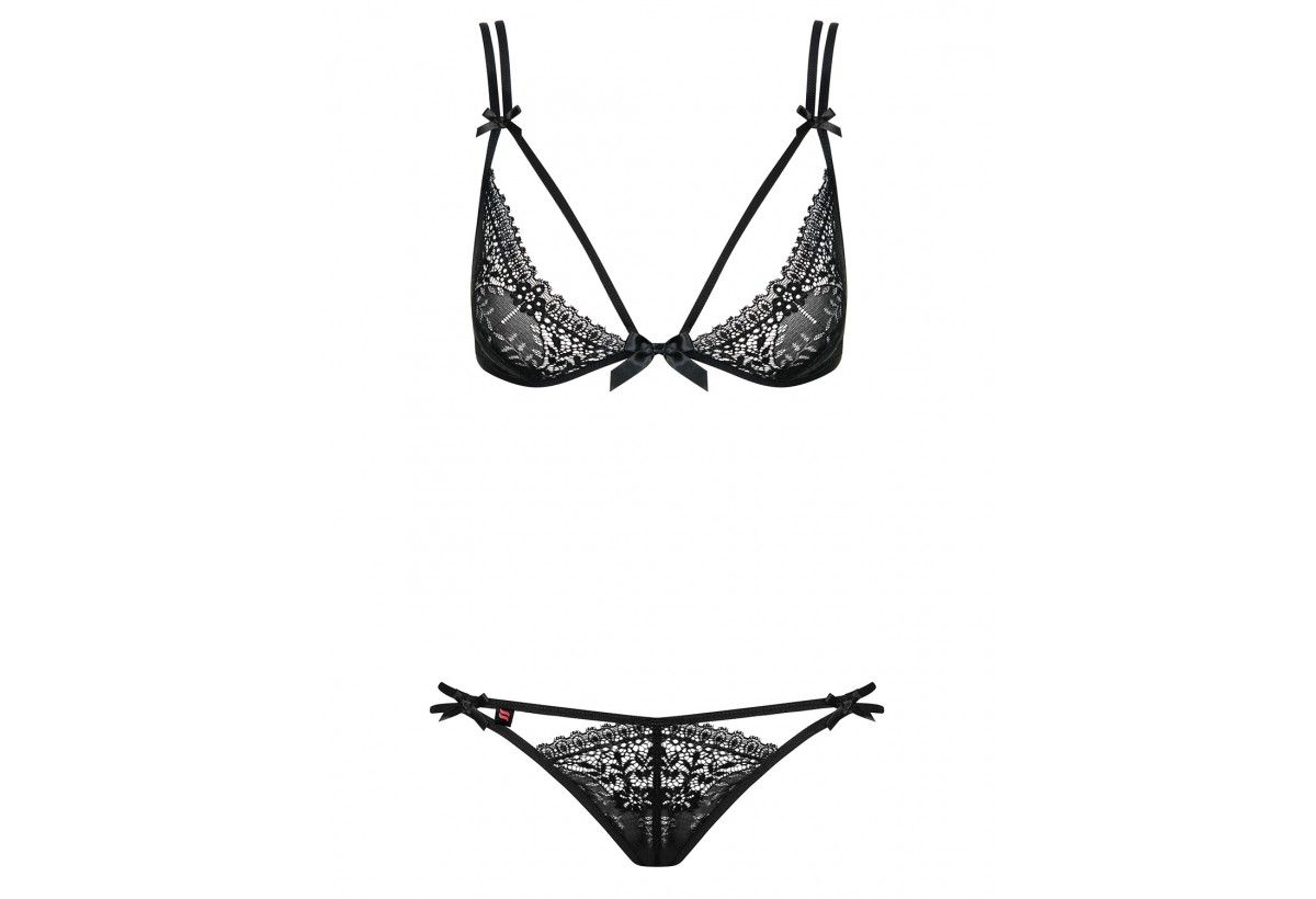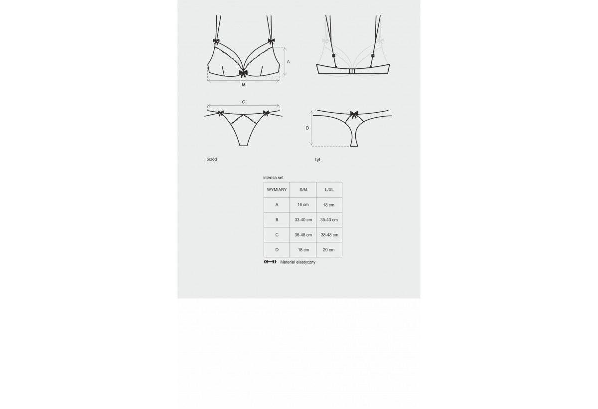 Seksowny komplet Intensa z pieknymi paseczkami - tasiemki przy biuście. Bardzo seksowna koronka. Piękne stringi. .